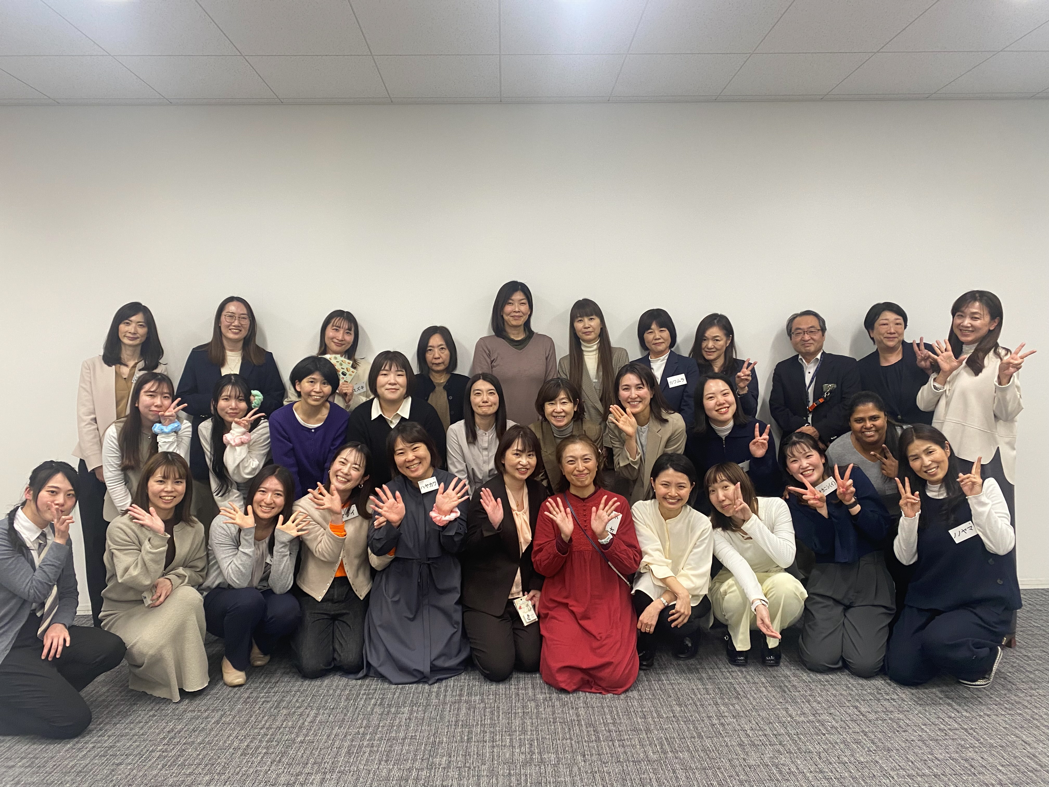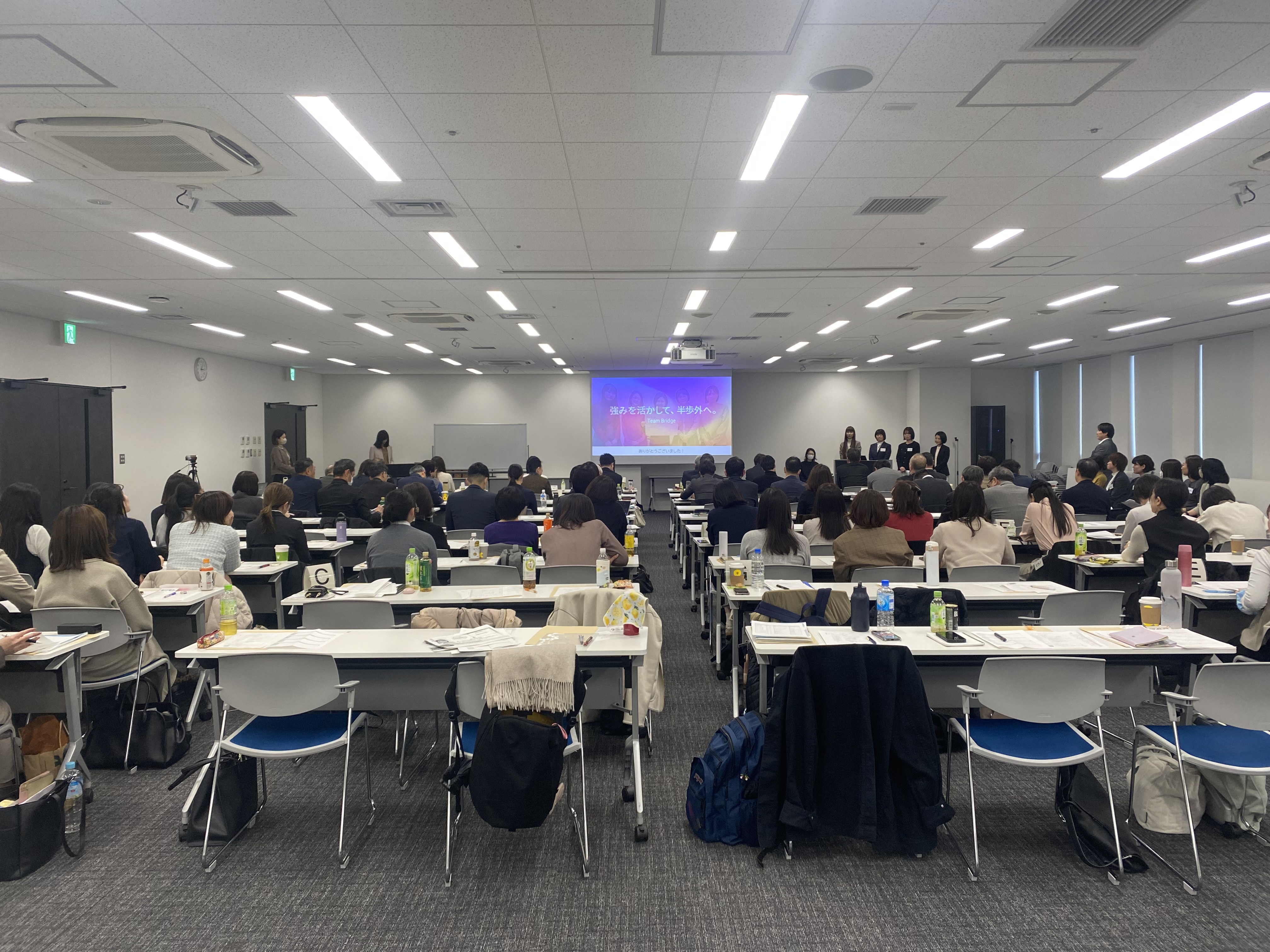 令和8年3月13日(金)に開催された成果報告会では、受講生が8つのグループに分かれ、全6回の研修を通じて得た学びを踏まえたアクションプランを発表しました。本研修のコーディネーターやチューターをはじめ、研修講師、企業経営者の方々にはコメンテーターとして、アドバイスや応援コメントのほか、「自身の気づきにもなった」「社内の他のメンバーにも受講してほしい」など多くのコメントを頂戴しました。どのグループも今後の行動目標が伝わる、素晴らしい発表ばかりでした。